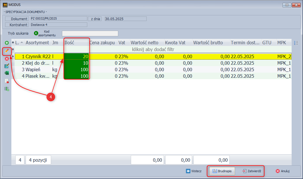 - Zapisz do brudnopisu - ta opcja zapisu pozwoli wprowadzić zmiany w zamówieniu do dostawcy.
