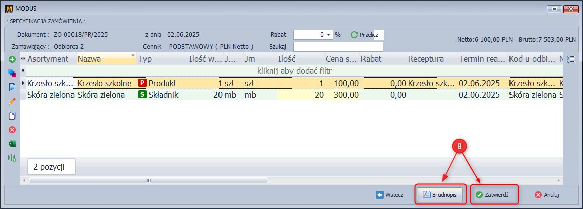 - Zapisz do brudnopisu - ta opcja zapisu pozwoli wprowadzić zmiany w zamówieniu od odbiorcy, ale nie zostanie ono przekazane do produkcji.