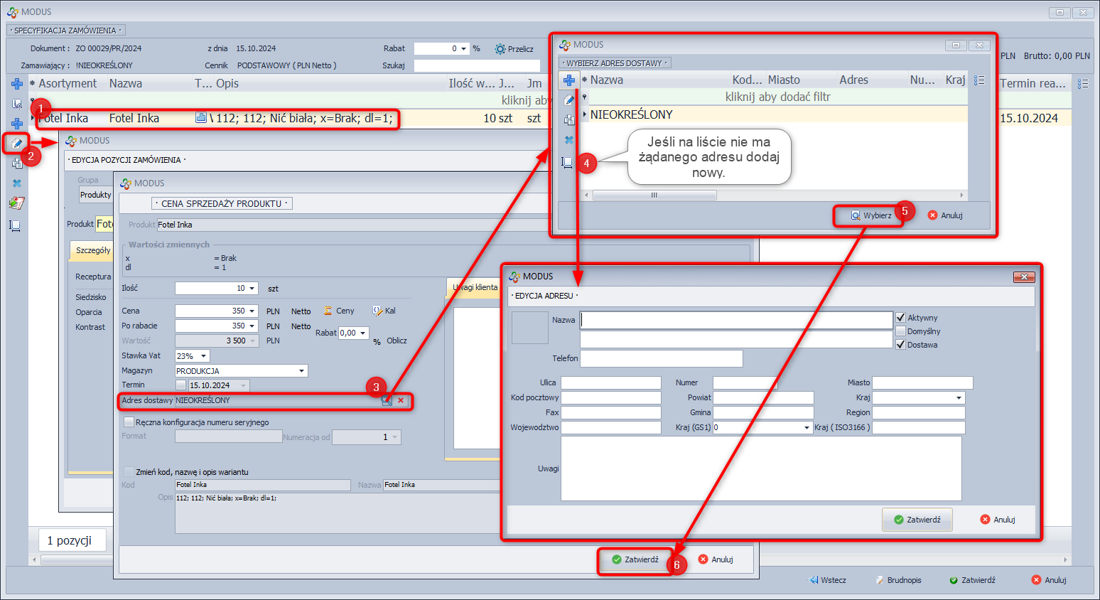 - W oknie edycji ilości oraz ceny sprzedaży produktu wejść do edycji adresu dostawy (3)