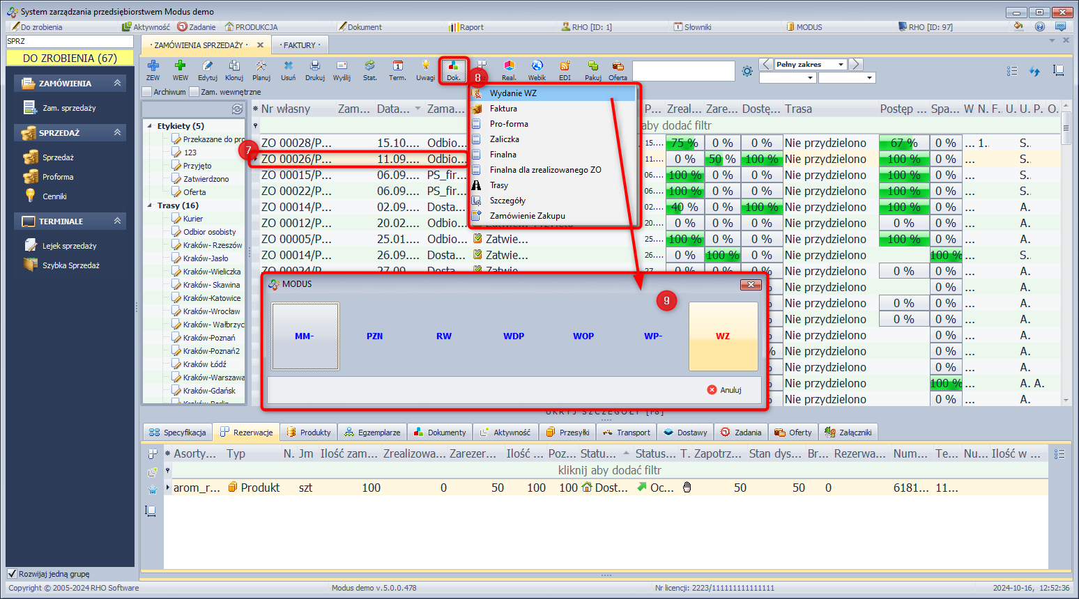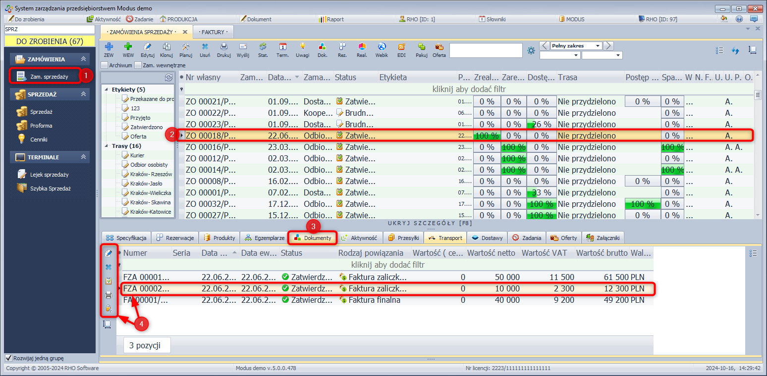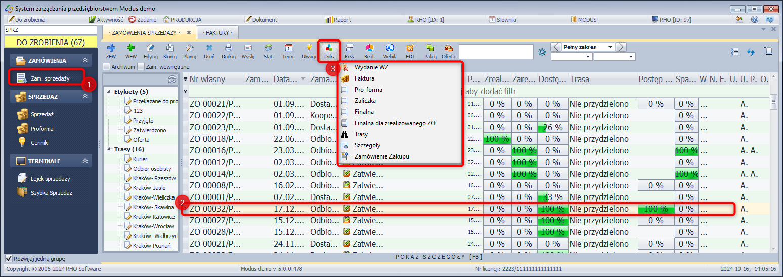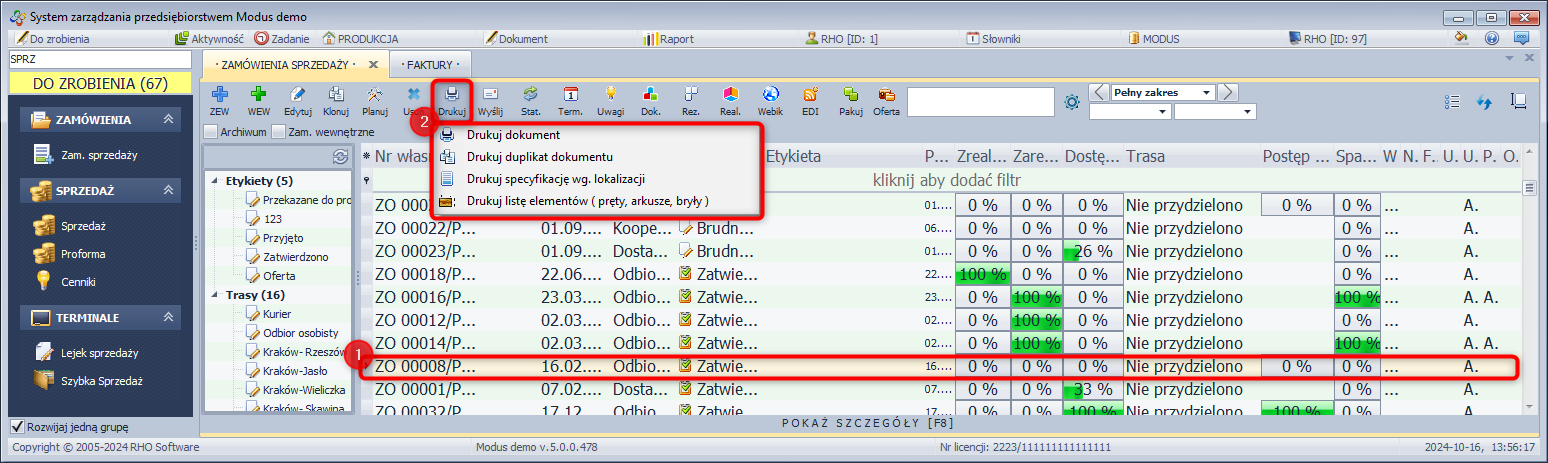 - Zaznacz dokument ZO, dla którego chcesz wygenerować dokument