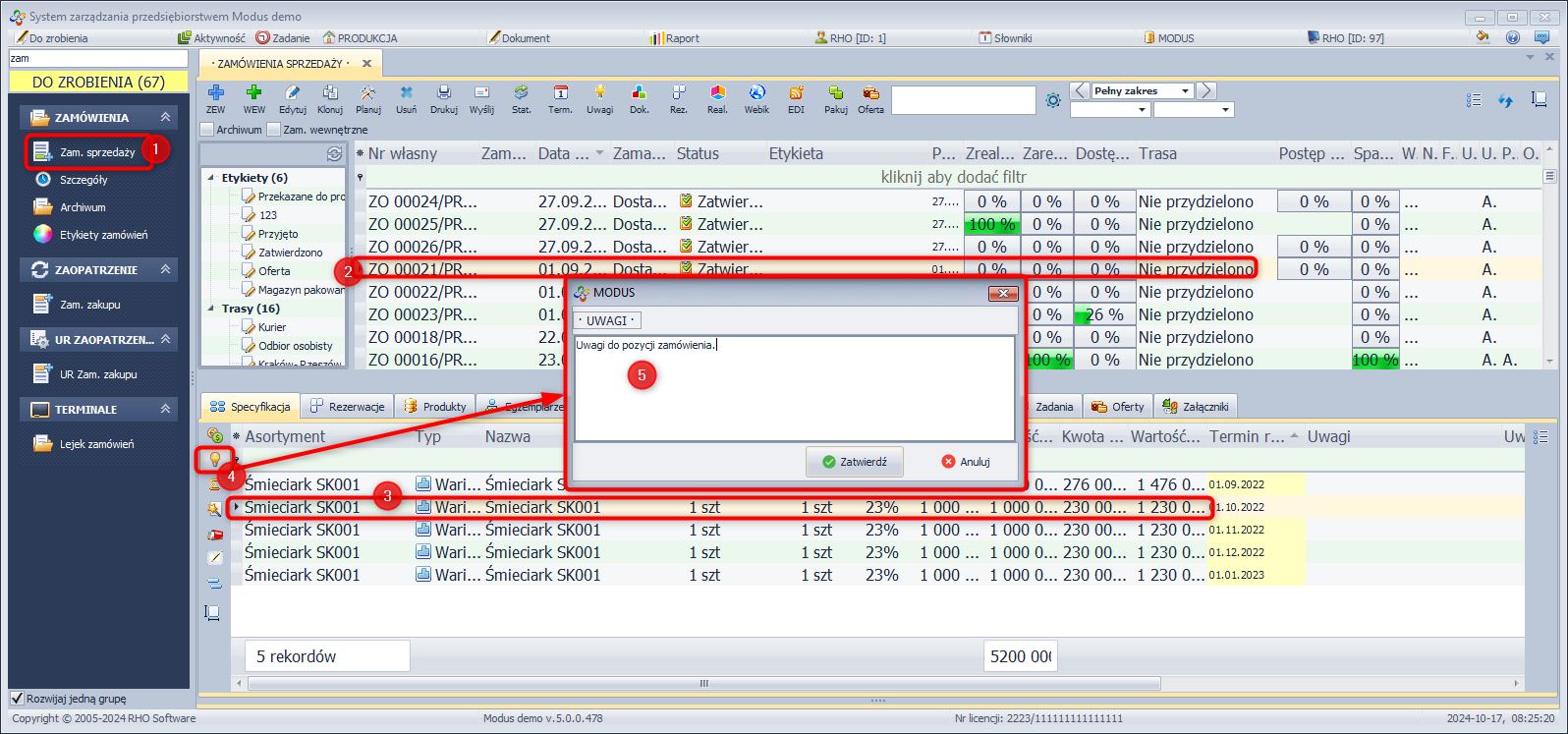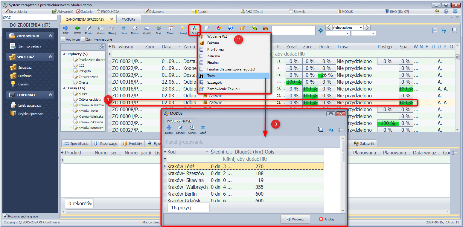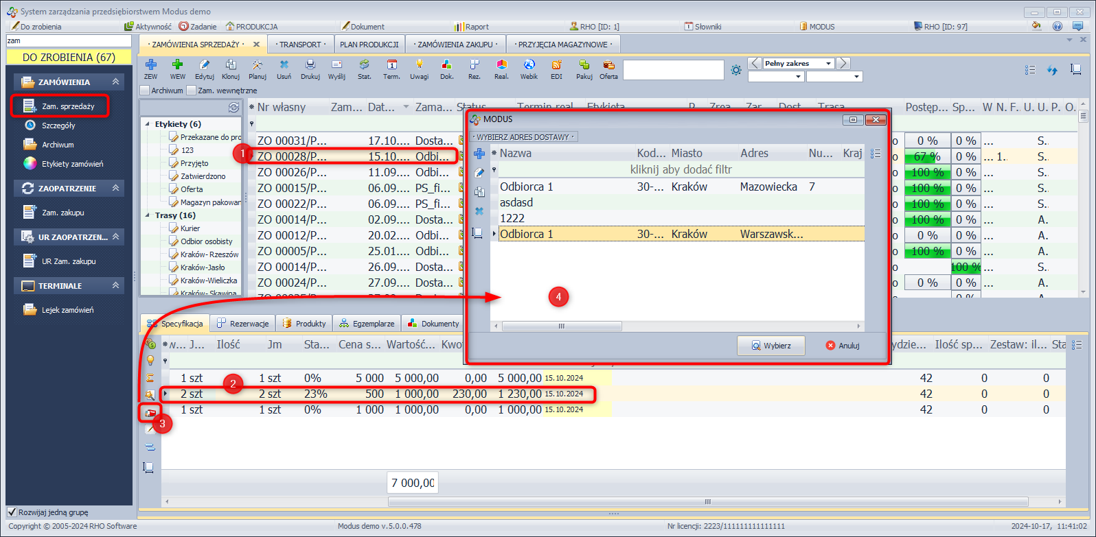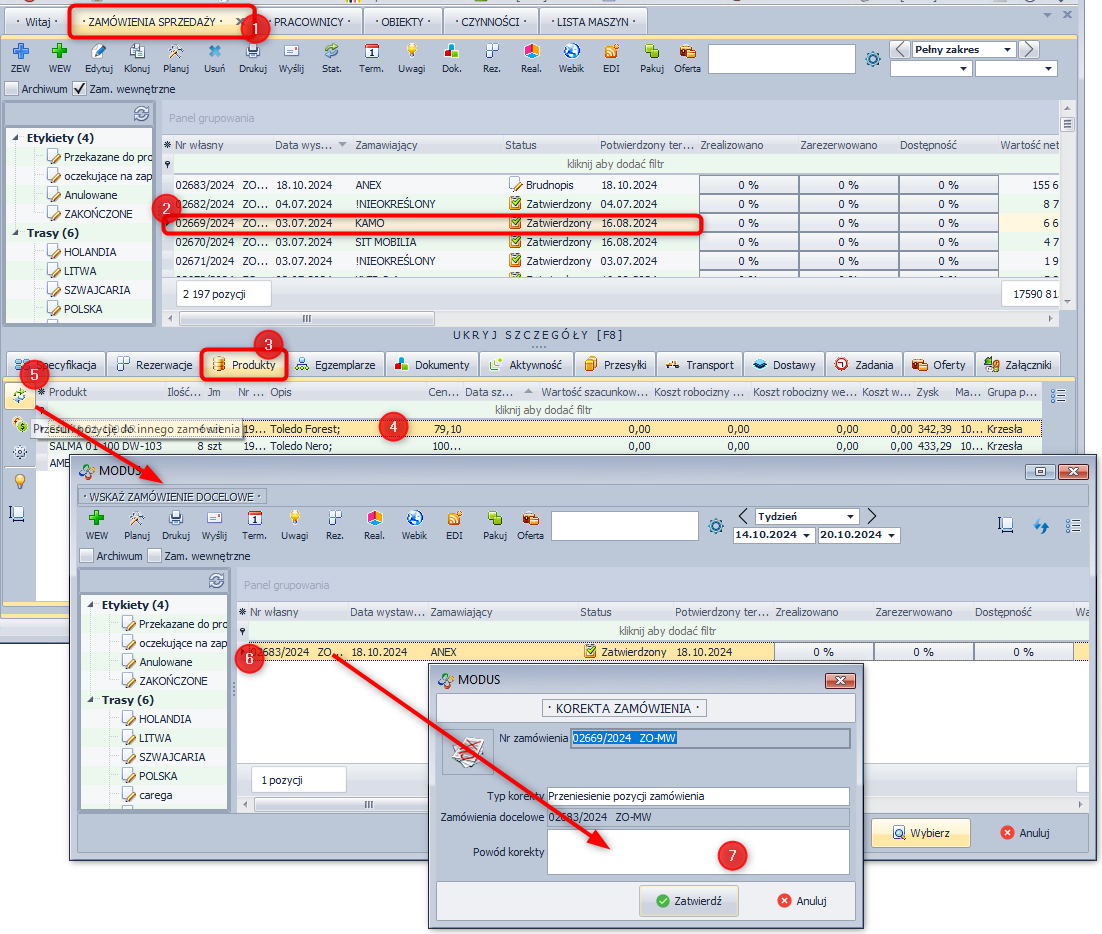 System Modus umożliwia dokonanie zmiany w zamówieniu sprzedaży polegającej na przesunięciu pozycji z jednego zamówienia do innego. Jest to szczególnie przydatne w sytuacji, gdy status zamówienia nie pozwala na jego edycję.