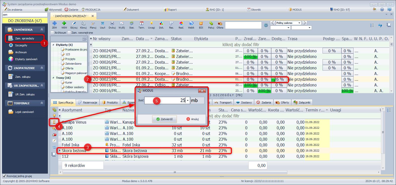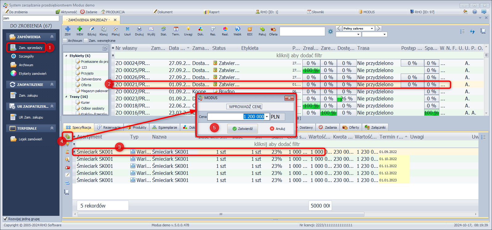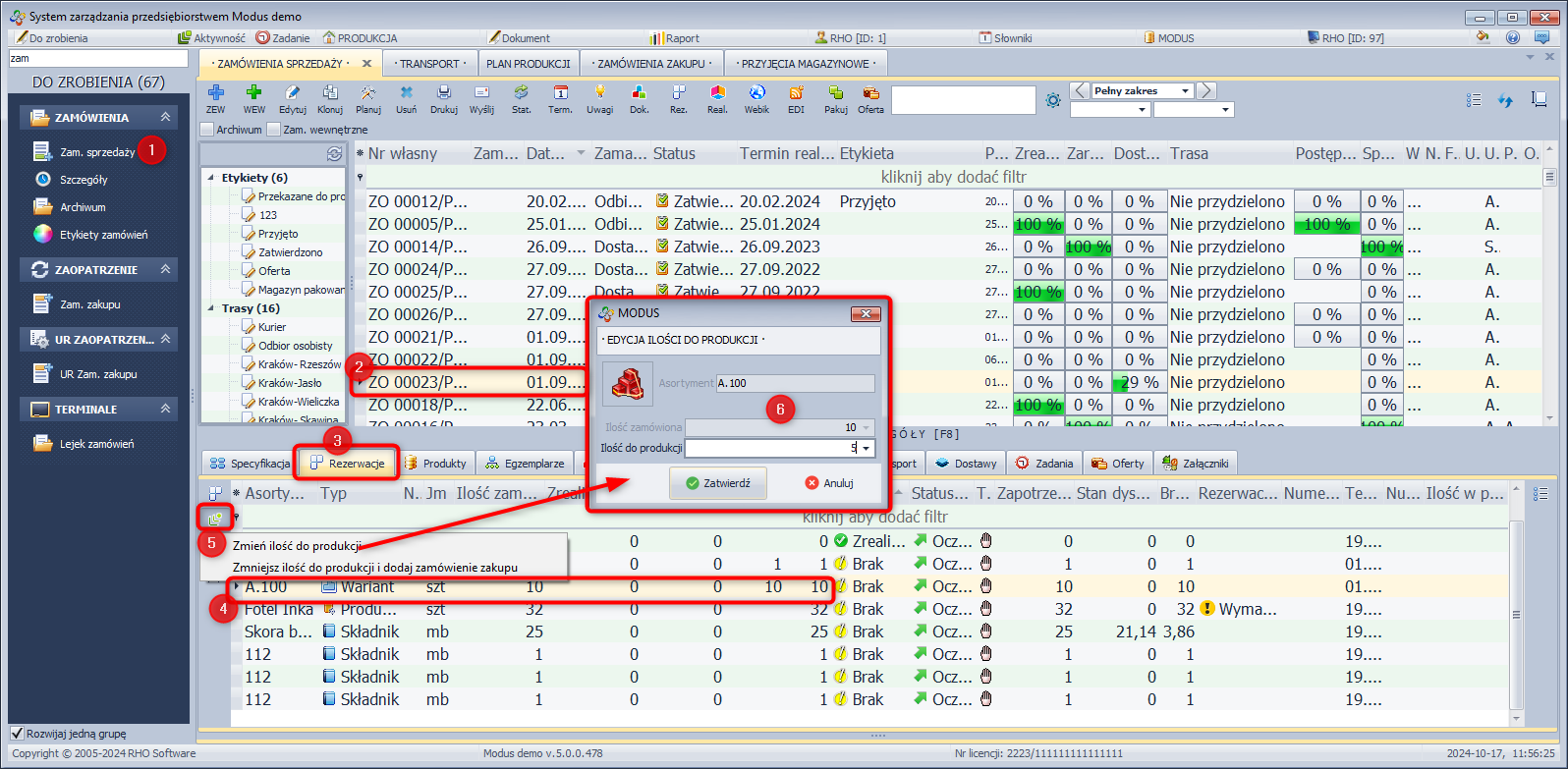 System Modus umożliwia dokonanie zmiany w zamówieniu sprzedaży polegającej na przesunięciu pozycji z jednego zamówienia do innego. Jest to szczególnie przydatne w sytuacji, gdy status zamówienia nie pozwala na jego edycję.