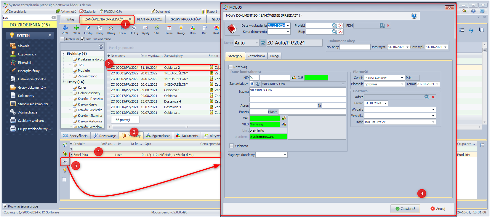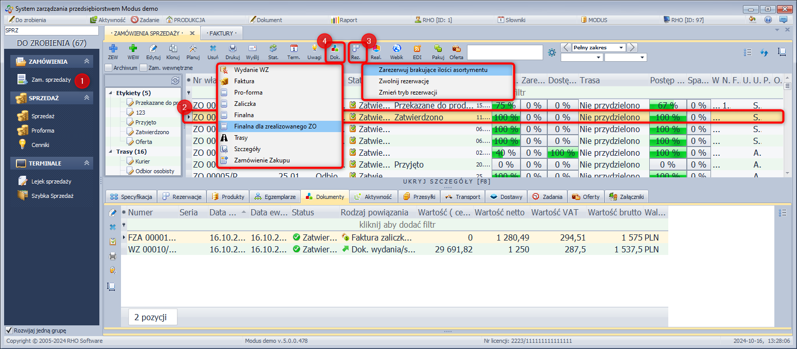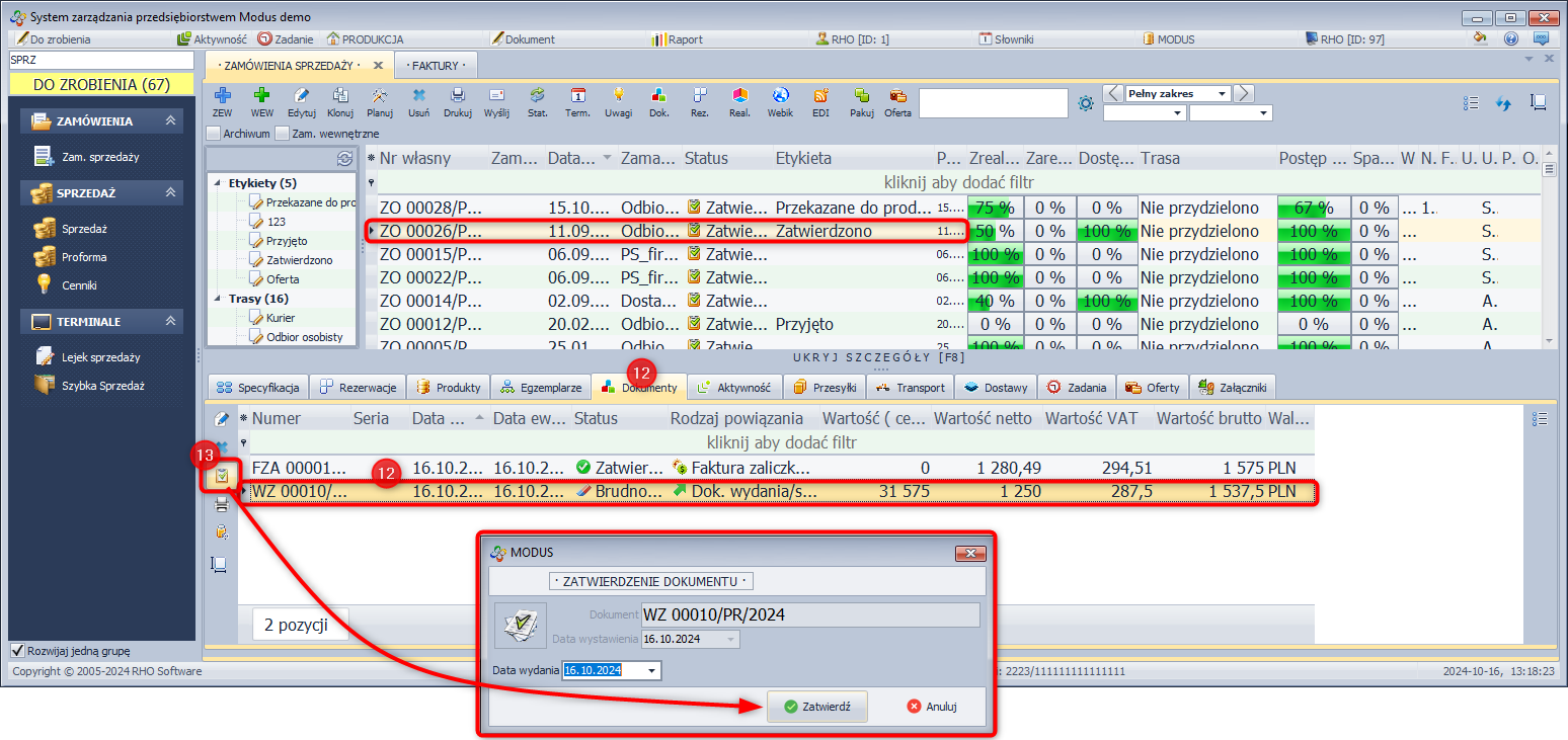 - Zatwierdź wygenerowany dokument Zamówienia sprzedaży.