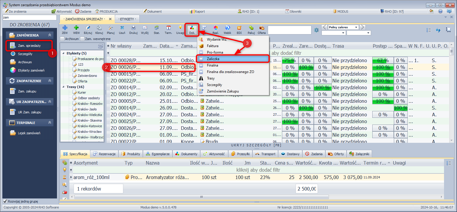- Wejdź do modułu ZAMÓWIENIA i wybierz Zam. sprzedaży.