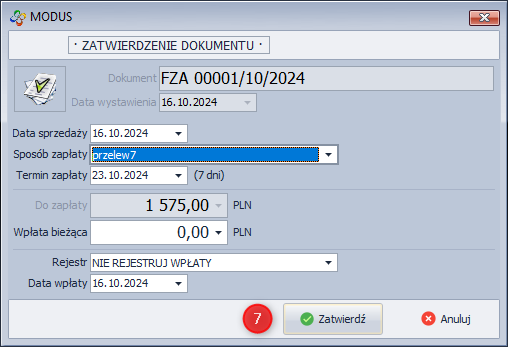 - W oknie ZATWIERDZENIE DOKUMENTU kliknij Zatwierdź.