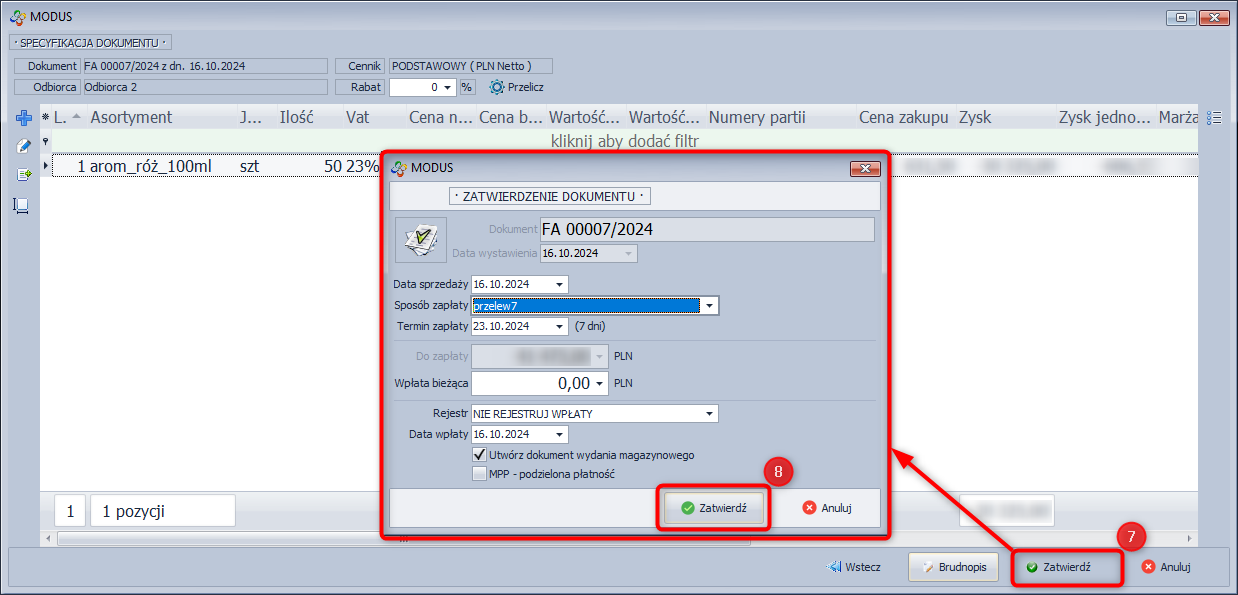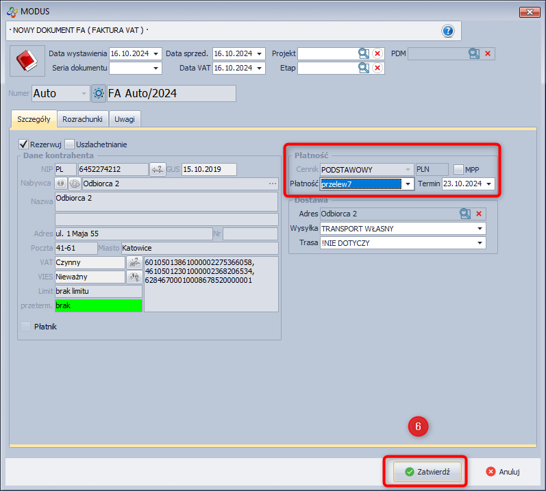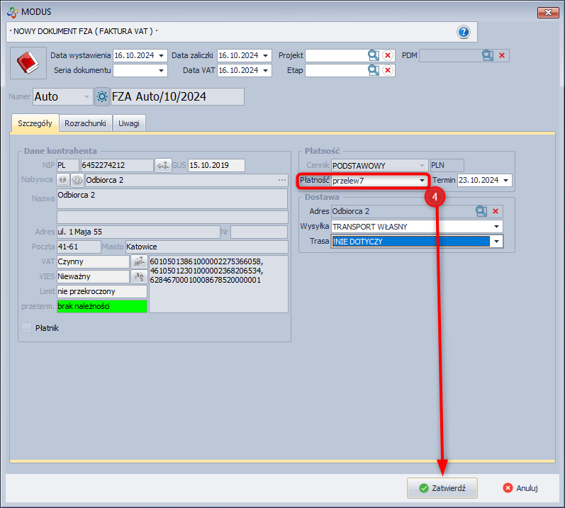 - Określ sposób zapłaty i kliknij Zatwierdź.
