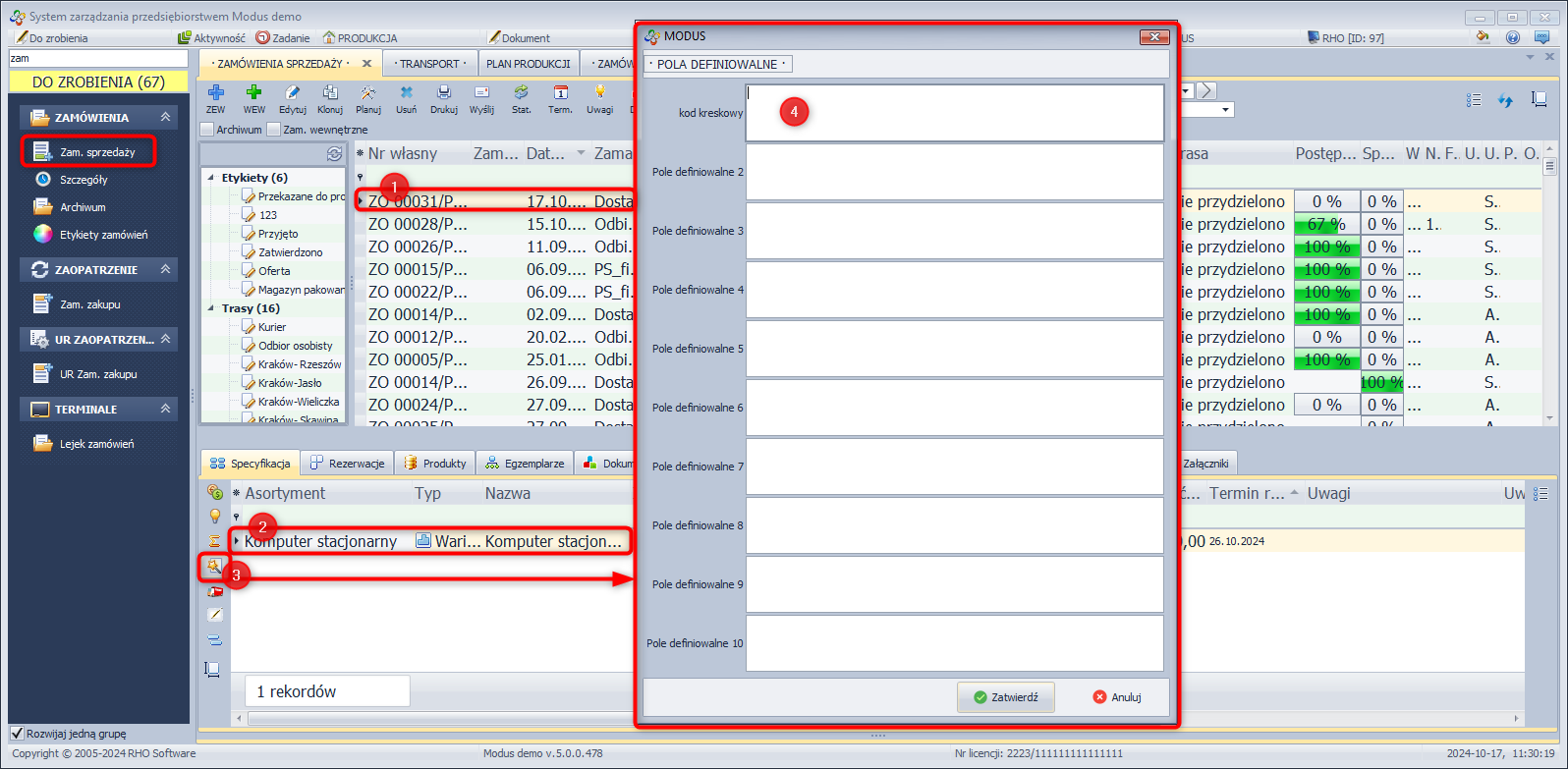 - Wybierz zamówienie, w którym chcesz edytować pola definiowalne.