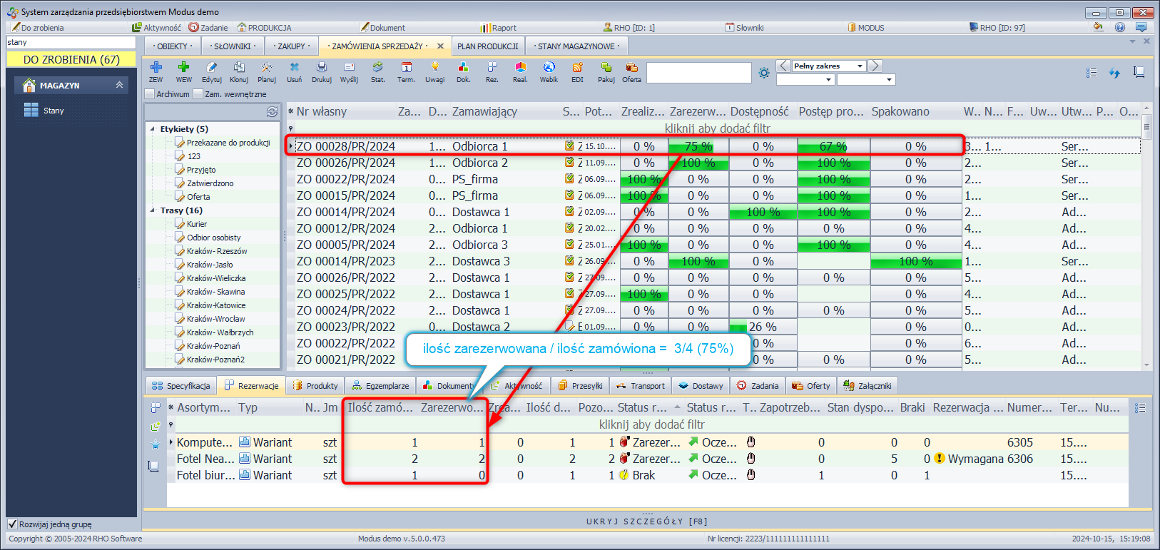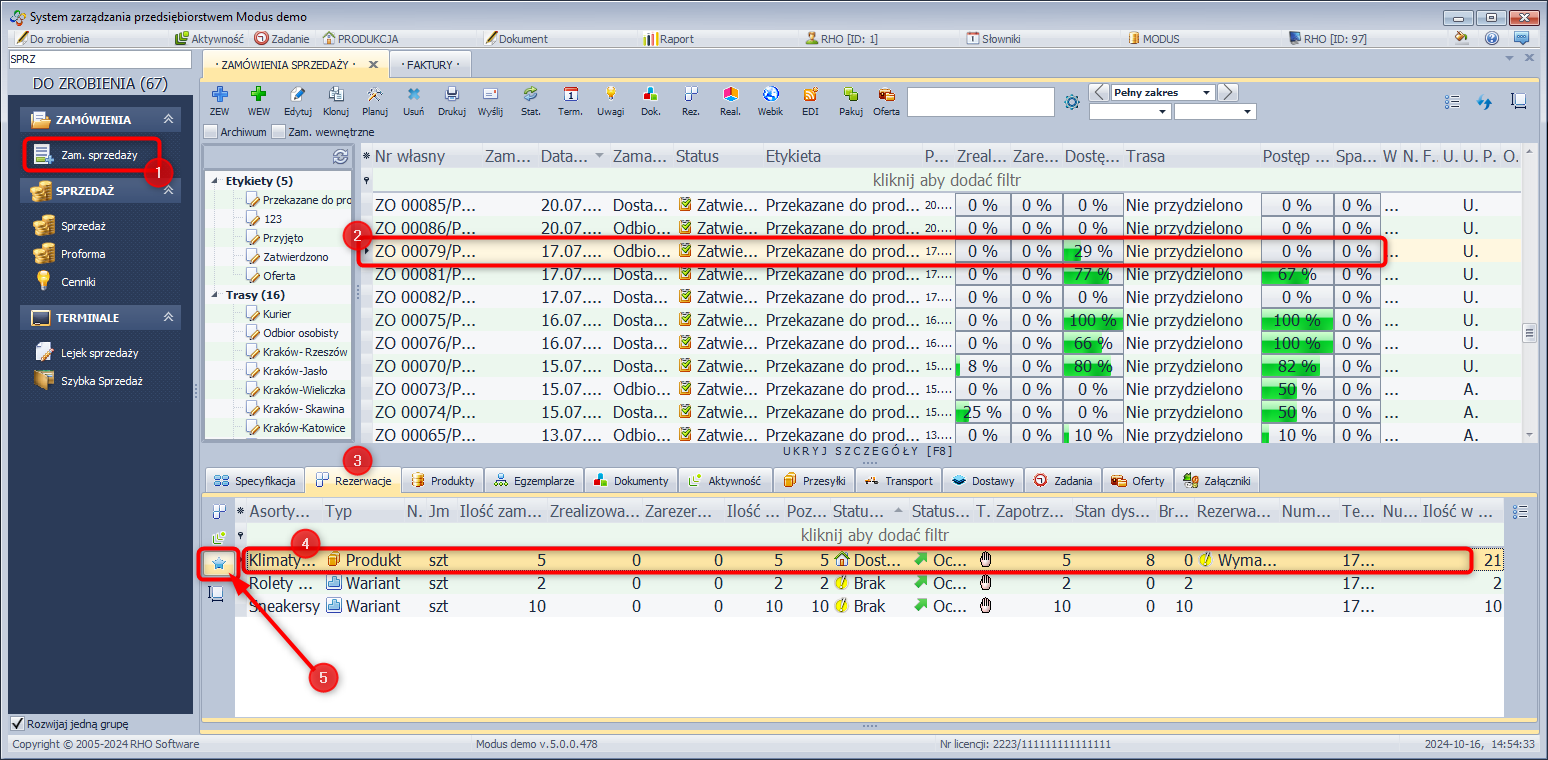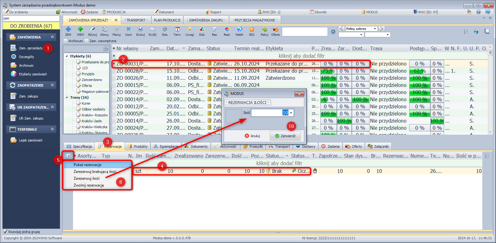 System Modus umożliwia rezerwację zamówionego asortymentu dla danego kontrahenta jak również zdejmowanie założonych uprzednio rezerwacji. Istotą rezerwacji asortymentu jest zablokowanie możliwości wydania lub sprzedaży tego asortymentu przez innych użytkowników. Zarezerwowany asortyment pomniejsza stan dyspozycyjny o zarezerwowaną ilość. Więcej na temat rezerwacji znajdziesz tutaj.