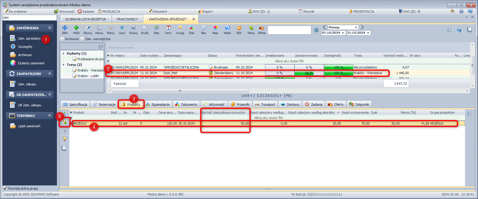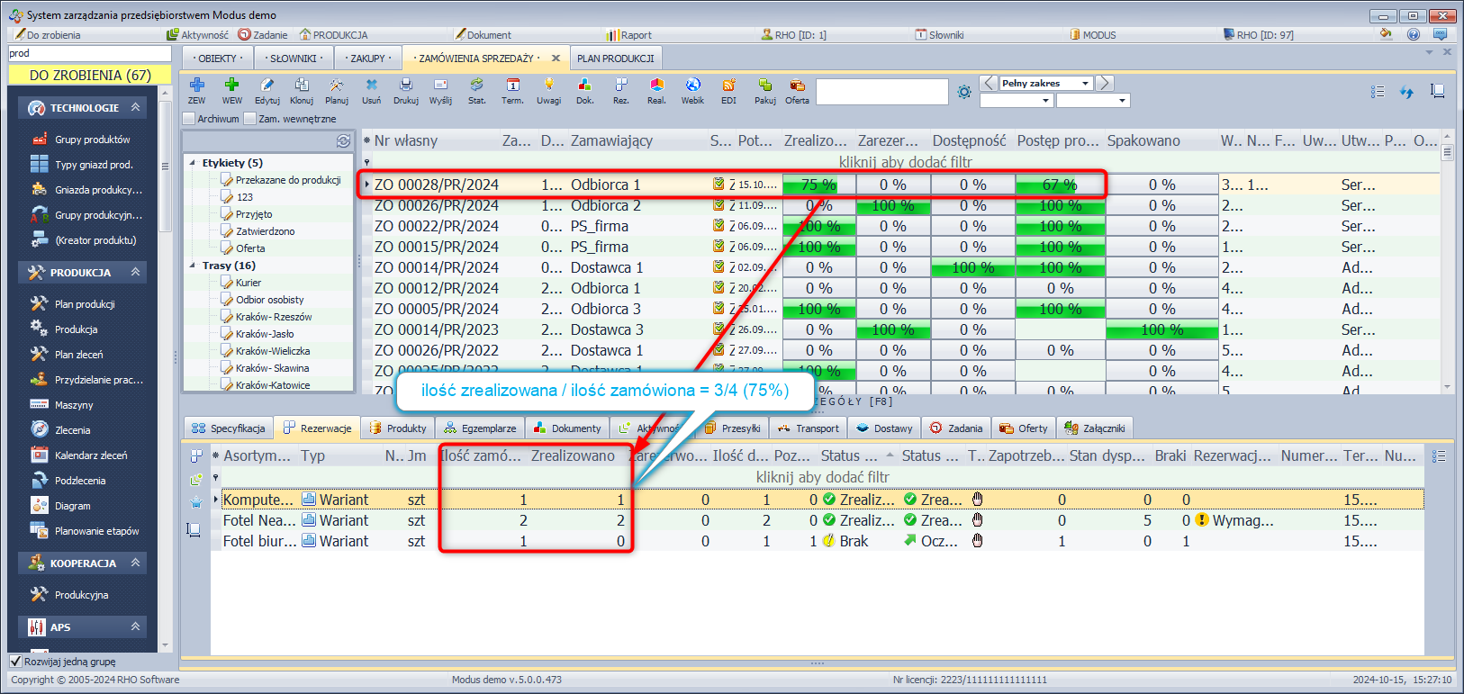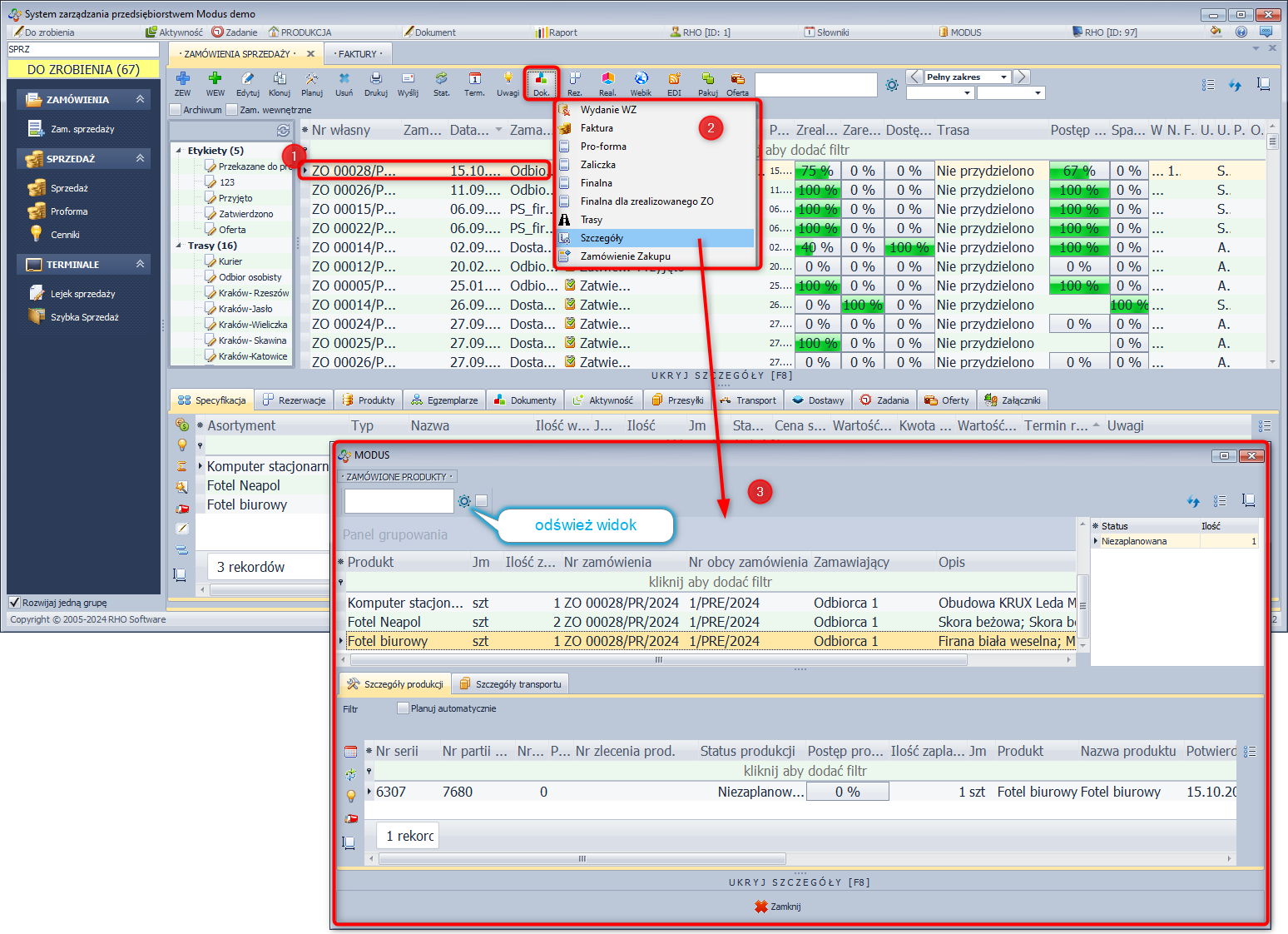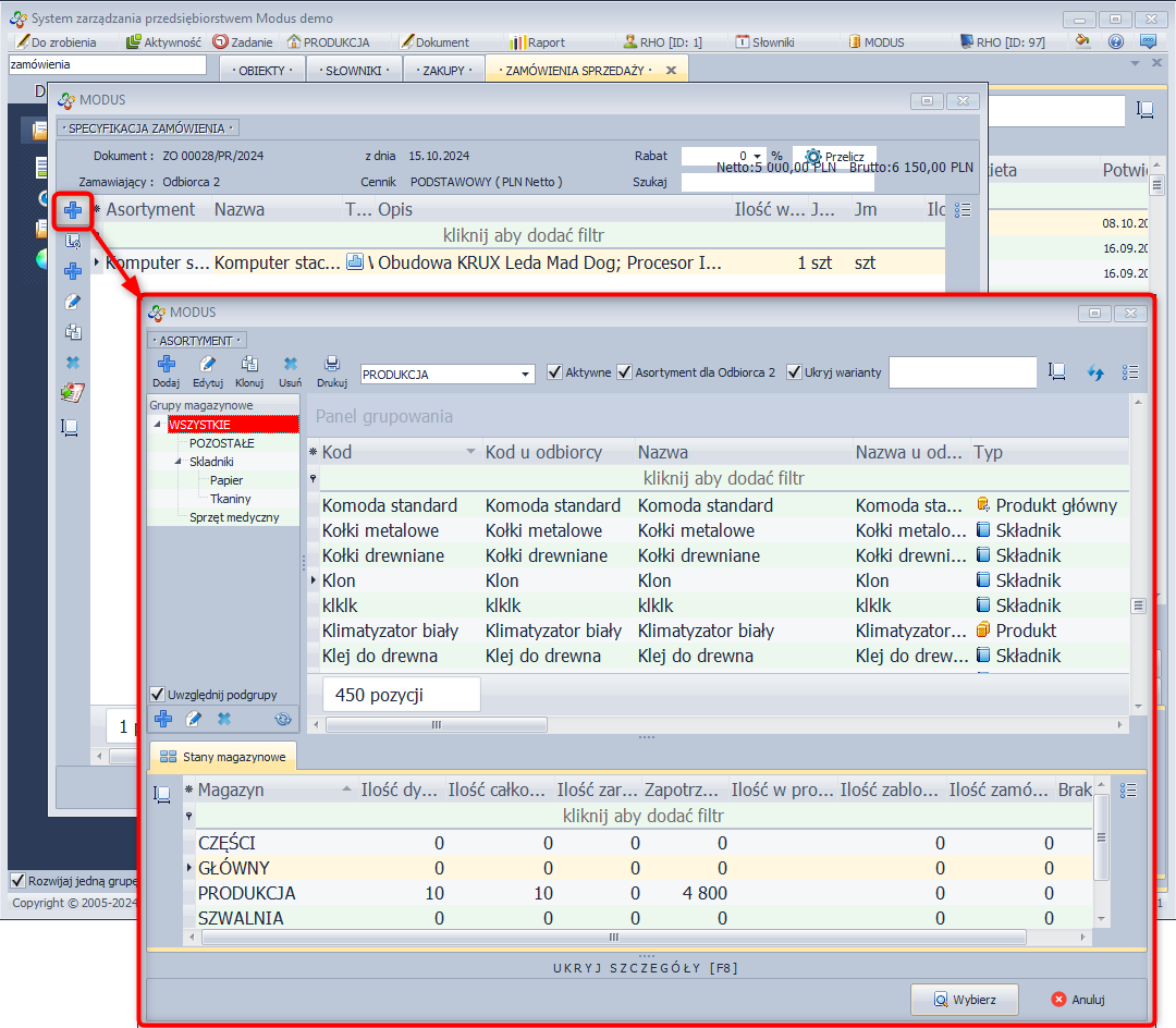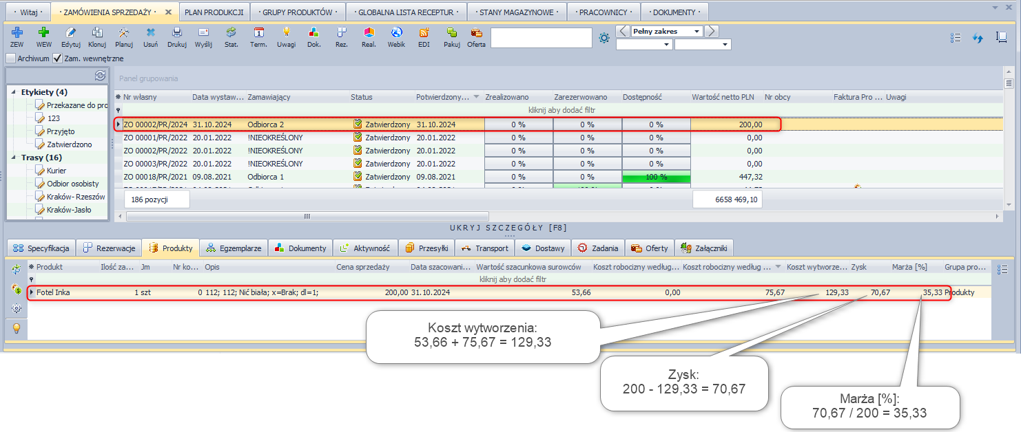 - Zaznacz zamówienie, w którym znajdują się produkty posiadający w swojej recepturze półprodukty.