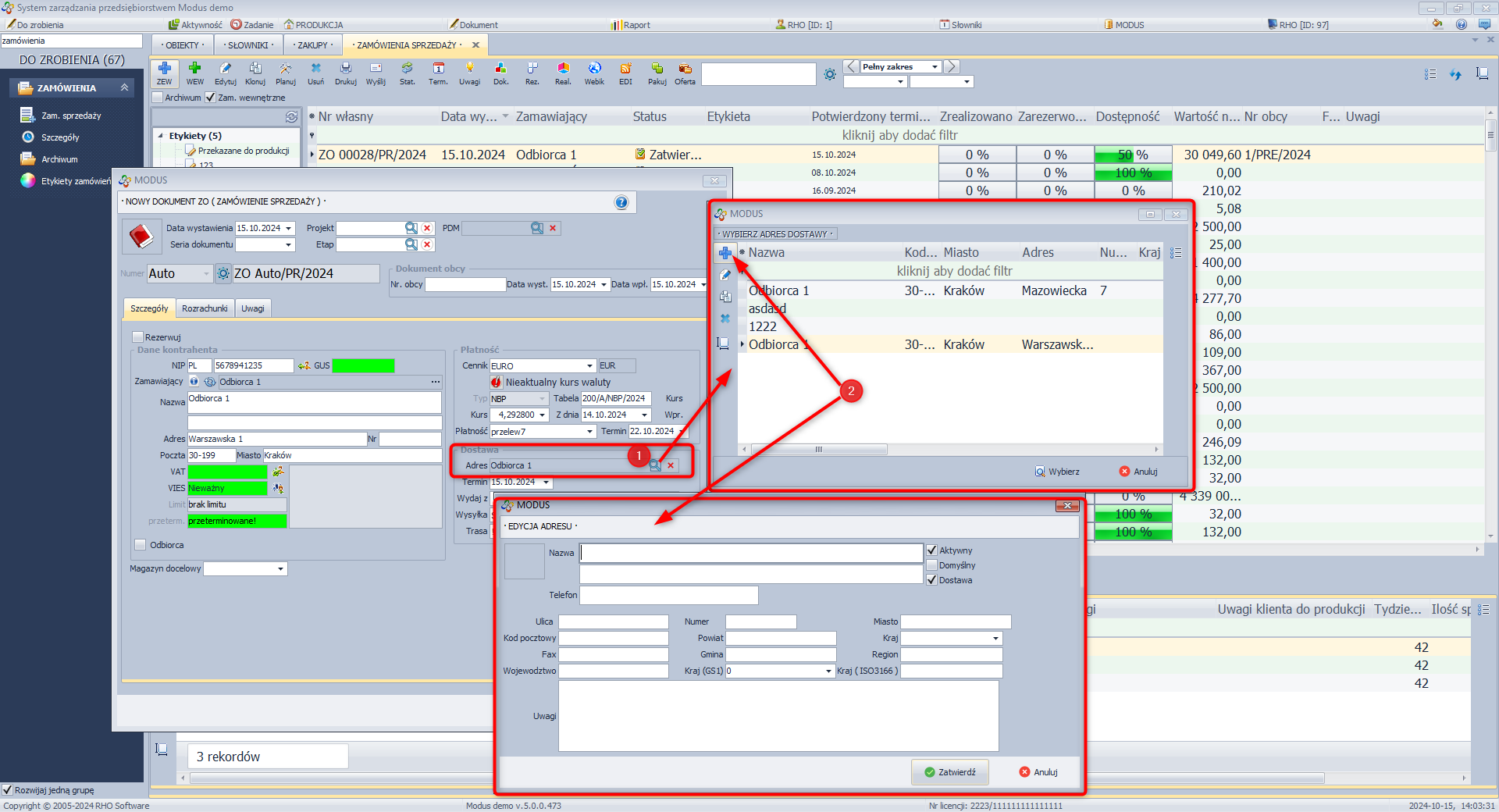 - po zatwierdzeniu, dokumenty tworzone na podstawie zamówienia sprzedaży będą mogły uwzględniać wybrany adres dostawy