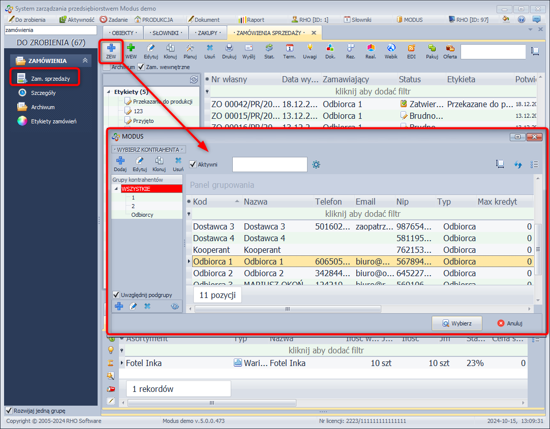 - Wybierz moduł ZAMÓWIENIA.