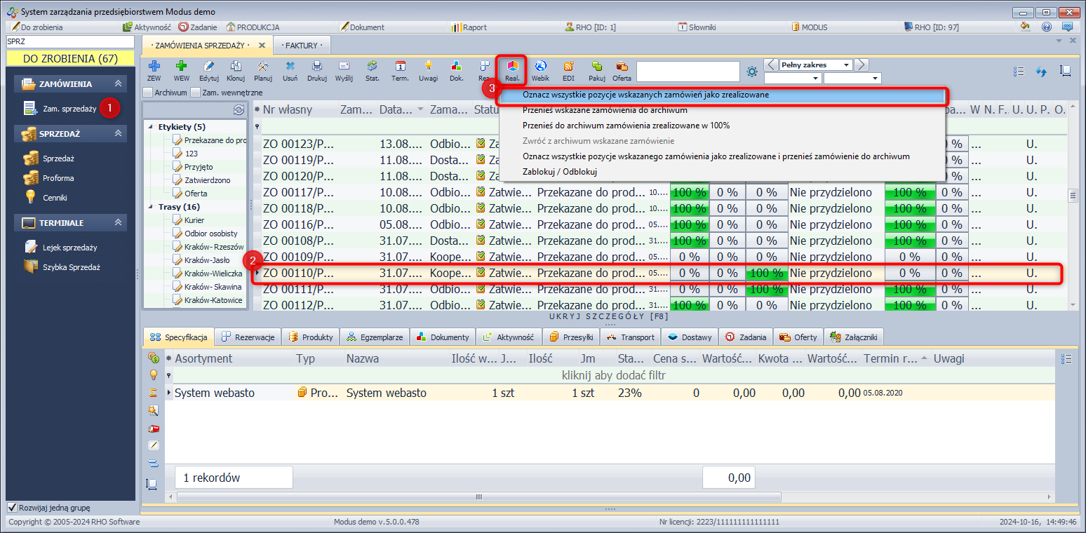 - Zaznaczyć odpowiednie zamówienie.
