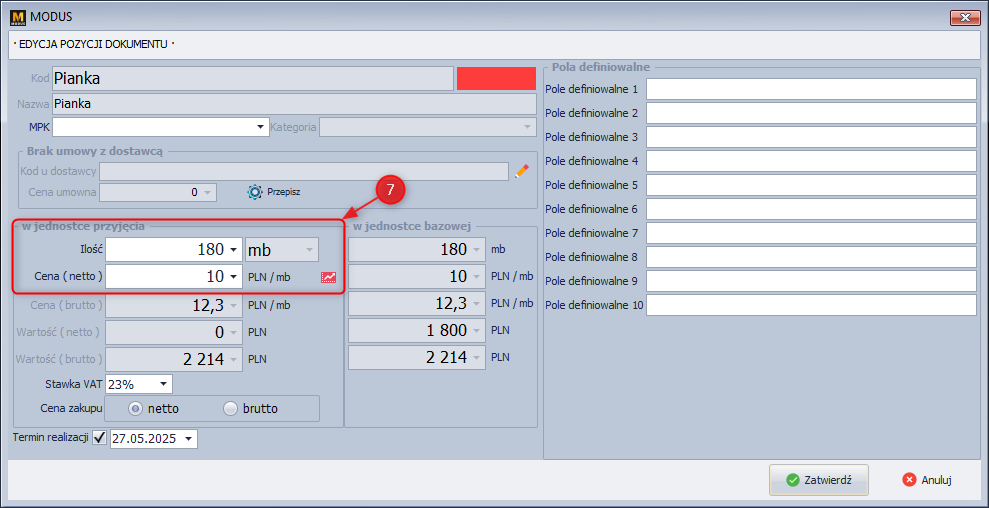 - Po zatwierdzeniu nastąpi powrót do okna dodawania kolejnej pozycji zamówienia. Aby dodać kolejną pozycję powtórz kroki 6 i 7.