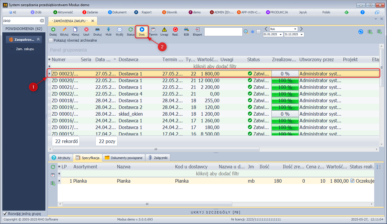 - ustalenie oczekiwanego terminu dostawy, który może być widoczny na wydruku dokumentu ZD