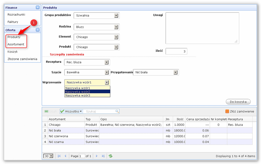 - określ parametry wybranego artykułu i kliknij przycisk Do koszyka,