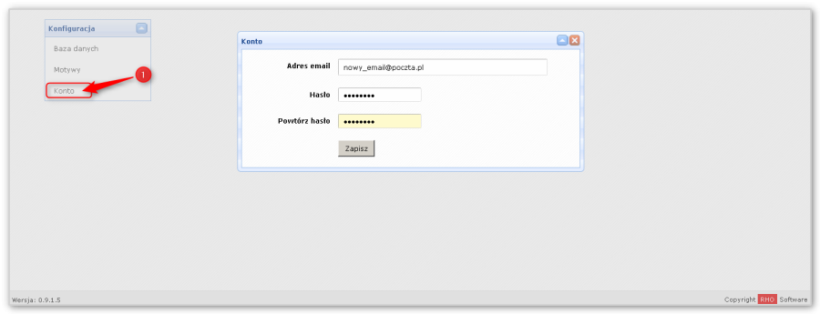 W celu zmiany adresu email i hasła konta konfiguracji:
